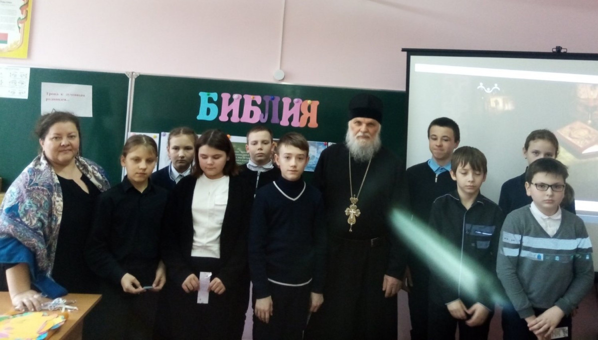 13 марта библиотекарь Матеевичской сельской библиотеки Анна Осокина совместно с настоятелем храма Рождества Иоана Предтечи в аг. Матеевичи архимадритом Алексием провели лекцию-беседу «Библия – книга книг» для учащихся 5-6 классов Матеевичской базовой школы.